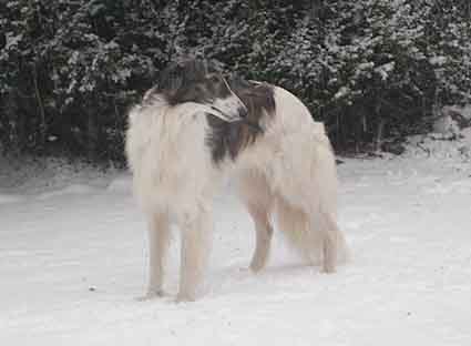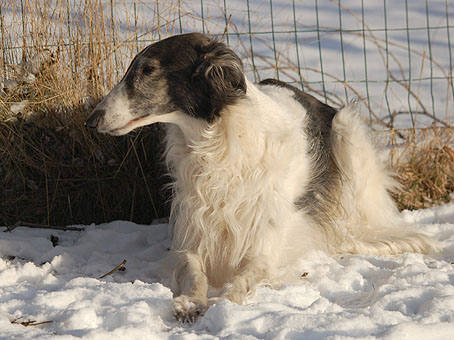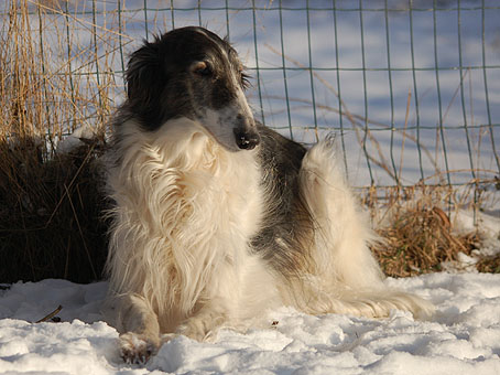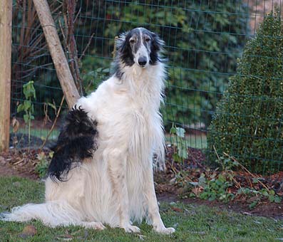 Zvoja kann auf 6 Jahre zurückblicken. Wir freuen uns, dass sie ihren "Ausflug" im Alter von 7 Monaten gut überstanden hat (mehr unter Zvoja´s Story) und so wieder zu uns gekommen ist. Sie ist eine sehr liebe, angenehme und wunderschöne Hündin, die uns so sehr an unser lachendes Sonnenscheinchen Mogly (LeiCro´s Russian Zlodeika) - ihre Großmutter - erinnert. Schön, dass es sie gibt. |