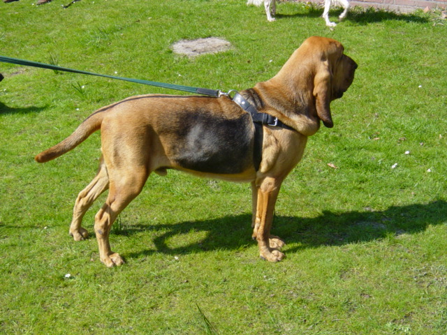 Bloodhound Hubert mit Suchgeschirr