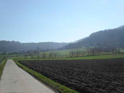 Die Obstgärten und Felder durch die Zvoja zog. |